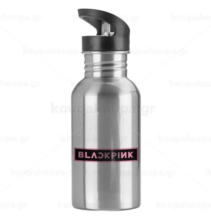 BLACKPINK, Παγούρι νερού Ασημένιο με καλαμάκι, ανοξείδωτο ατσάλι 600ml
