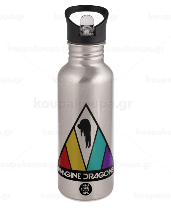 Imagine Dragons, Παγούρι νερού Ασημένιο με καλαμάκι, ανοξείδωτο ατσάλι 600ml
