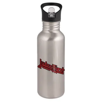 Judas Priest, Παγούρι νερού Ασημένιο με καλαμάκι, ανοξείδωτο ατσάλι 600ml