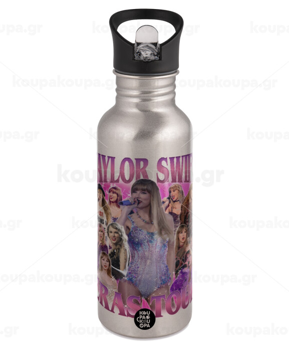 Taylor Swift, Παγούρι νερού Ασημένιο με καλαμάκι, ανοξείδωτο ατσάλι 600ml