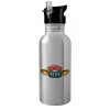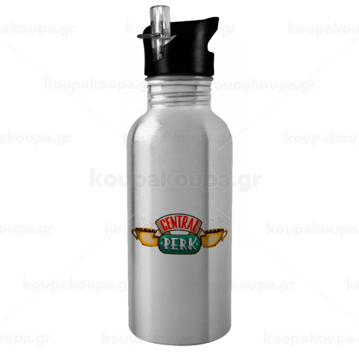 Central perk, Παγούρι νερού Ασημένιο με καλαμάκι, ανοξείδωτο ατσάλι 600ml