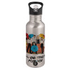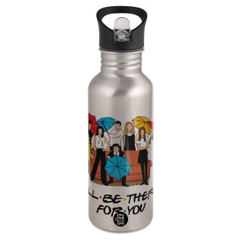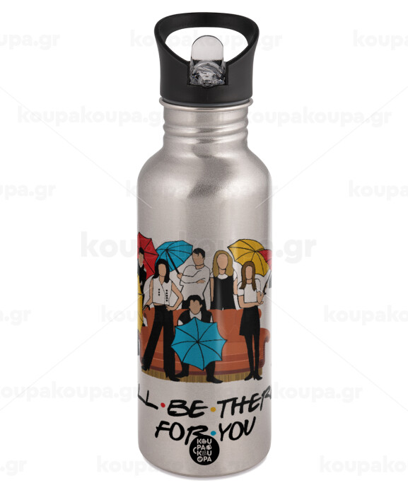 Friends cover, Παγούρι νερού Ασημένιο με καλαμάκι, ανοξείδωτο ατσάλι 600ml