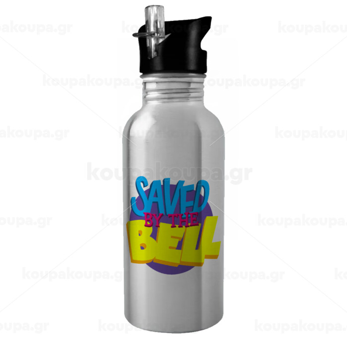 Saved by the Bell, Παγούρι νερού Ασημένιο με καλαμάκι, ανοξείδωτο ατσάλι 600ml