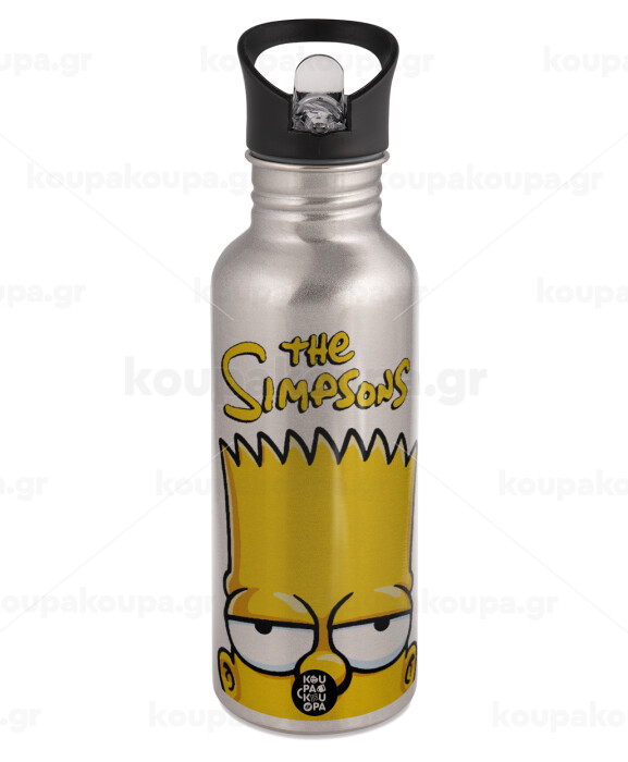 The Simpsons Bart, Παγούρι νερού Ασημένιο με καλαμάκι, ανοξείδωτο ατσάλι 600ml