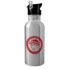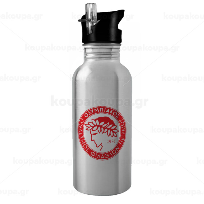 Ολυμπιακός, Παγούρι νερού Ασημένιο με καλαμάκι, ανοξείδωτο ατσάλι 600ml