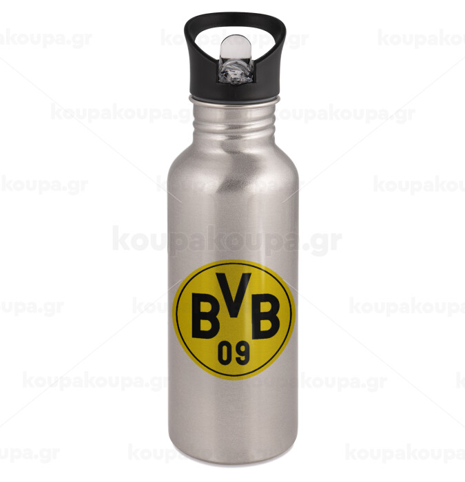 BVB Μπορούσια Ντόρτμουντ , Παγούρι νερού Ασημένιο με καλαμάκι, ανοξείδωτο ατσάλι 600ml