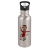Cristiano Ronaldo, Παγούρι νερού Ασημένιο με καλαμάκι, ανοξείδωτο ατσάλι 600ml