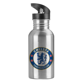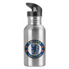 FC Chelsea, Παγούρι νερού Ασημένιο με καλαμάκι, ανοξείδωτο ατσάλι 600ml
