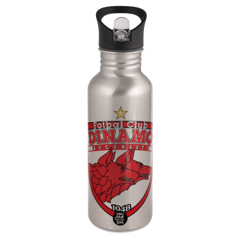 FC Dinamo Bucuresti, Παγούρι νερού Ασημένιο με καλαμάκι, ανοξείδωτο ατσάλι 600ml