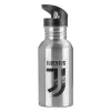 FC Juventus, Παγούρι νερού Ασημένιο με καλαμάκι, ανοξείδωτο ατσάλι 600ml