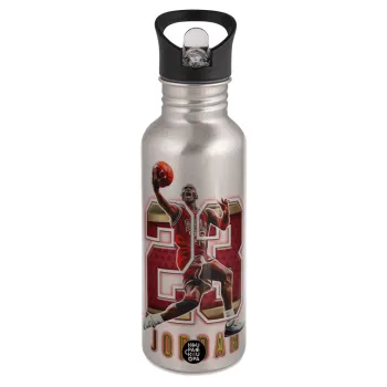 Jordan 23, Παγούρι νερού Ασημένιο με καλαμάκι, ανοξείδωτο ατσάλι 600ml