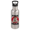 JUDO free hugs, Παγούρι νερού Ασημένιο με καλαμάκι, ανοξείδωτο ατσάλι 600ml
