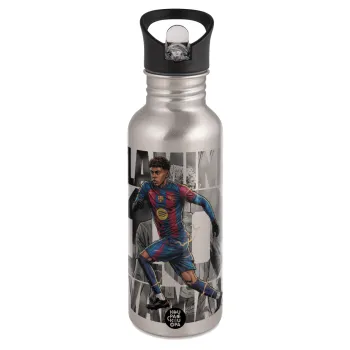 Lamine Yamal (Λαμίν Γιαμάλ), Παγούρι νερού Ασημένιο με καλαμάκι, ανοξείδωτο ατσάλι 600ml