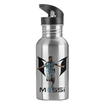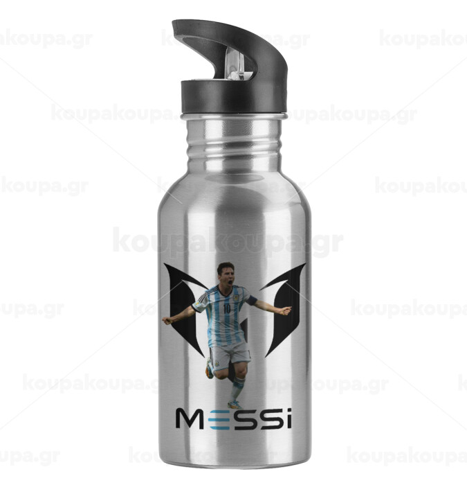 Λιονέλ Μέσι, Leo Messi, Παγούρι νερού Ασημένιο με καλαμάκι, ανοξείδωτο ατσάλι 600ml