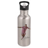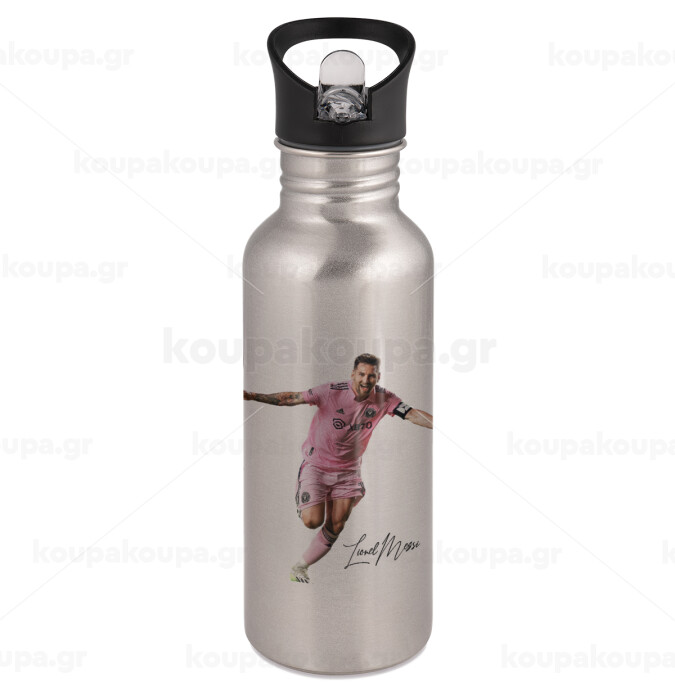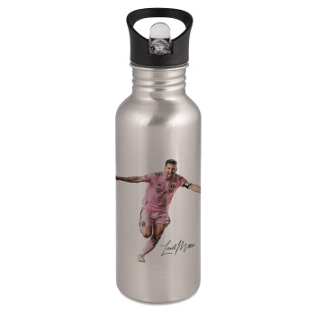 Lionel Messi inter miami jersey, Παγούρι νερού Ασημένιο με καλαμάκι, ανοξείδωτο ατσάλι 600ml