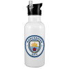 Manchester City FC , Παγούρι νερού Ασημένιο με καλαμάκι, ανοξείδωτο ατσάλι 600ml