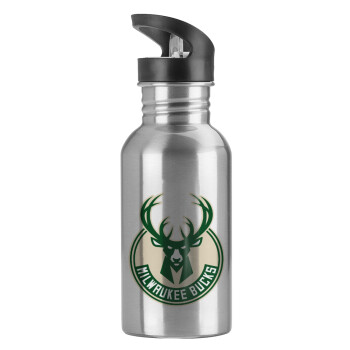 Milwaukee bucks, Παγούρι νερού Ασημένιο με καλαμάκι, ανοξείδωτο ατσάλι 600ml