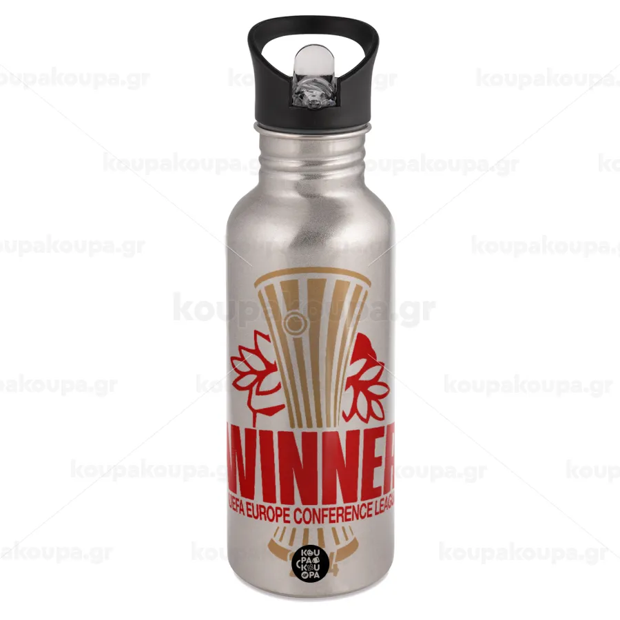 Europa Conference League WINNER, Παγούρι νερού Ασημένιο με καλαμάκι, ανοξείδωτο ατσάλι 600ml