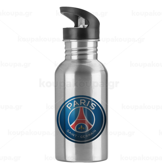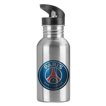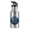 Paris Saint-Germain F.C., Παγούρι νερού Ασημένιο με καλαμάκι, ανοξείδωτο ατσάλι 600ml