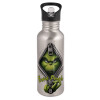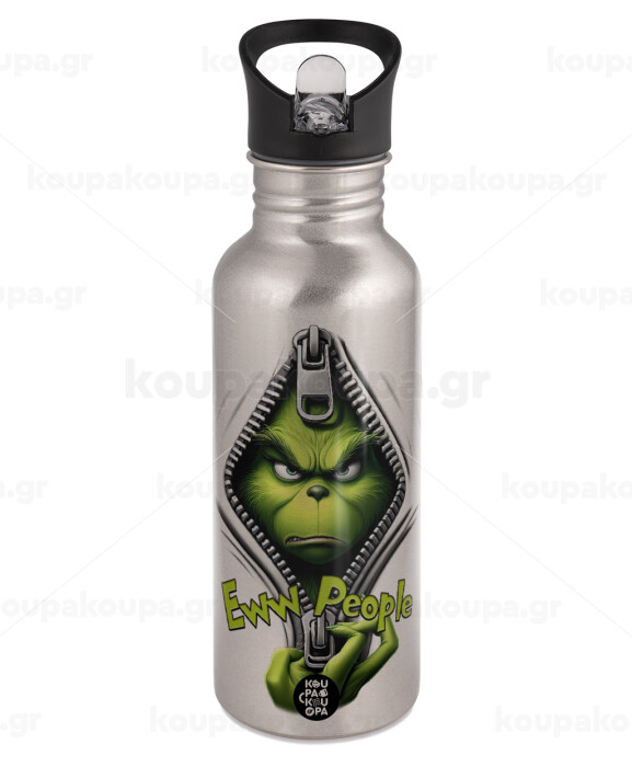 Grinch, eww people, Παγούρι νερού Ασημένιο με καλαμάκι, ανοξείδωτο ατσάλι 600ml