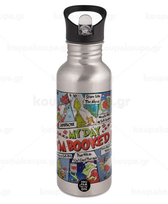 My Day Grinch, Παγούρι νερού Ασημένιο με καλαμάκι, ανοξείδωτο ατσάλι 600ml