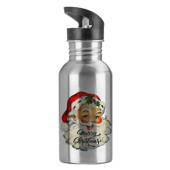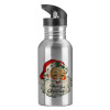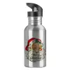 Santa vintage, Παγούρι νερού Ασημένιο με καλαμάκι, ανοξείδωτο ατσάλι 600ml