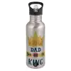 Dad you are the King, Παγούρι νερού Ασημένιο με καλαμάκι, ανοξείδωτο ατσάλι 600ml