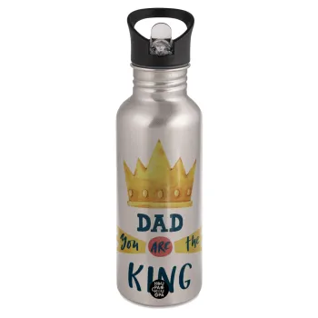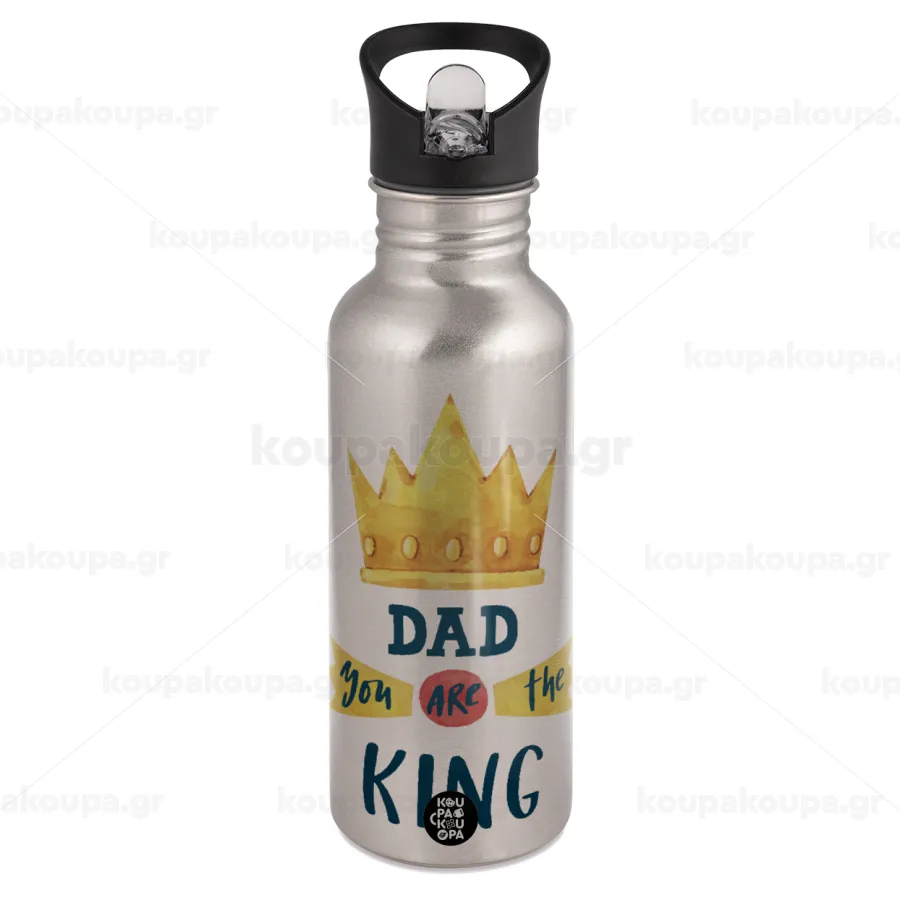 Dad you are the King, Παγούρι νερού Ασημένιο με καλαμάκι, ανοξείδωτο ατσάλι 600ml