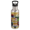 Daddy You Are my Hero, Παγούρι νερού Ασημένιο με καλαμάκι, ανοξείδωτο ατσάλι 600ml