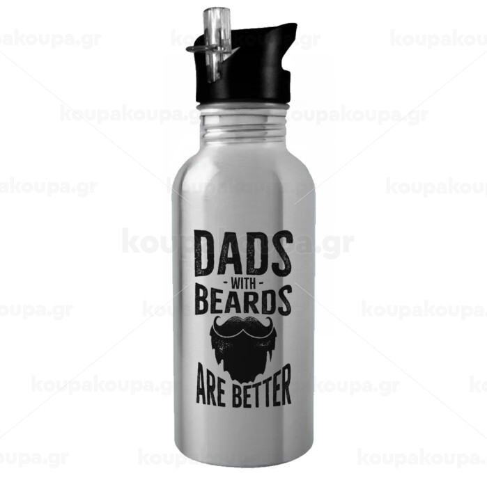 Dad's with beards are better, Παγούρι νερού Ασημένιο με καλαμάκι, ανοξείδωτο ατσάλι 600ml