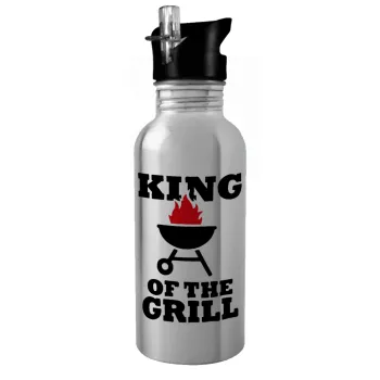 KING of the Grill, Παγούρι νερού Ασημένιο με καλαμάκι, ανοξείδωτο ατσάλι 600ml