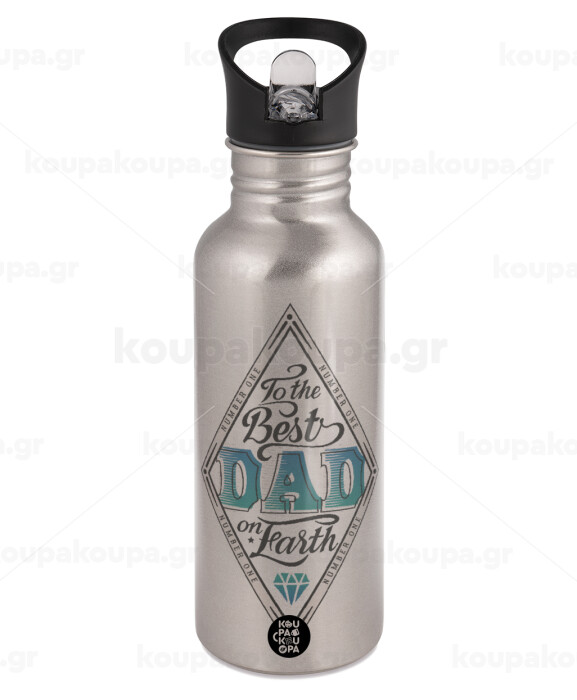 To the best DAD on earth, Παγούρι νερού Ασημένιο με καλαμάκι, ανοξείδωτο ατσάλι 600ml