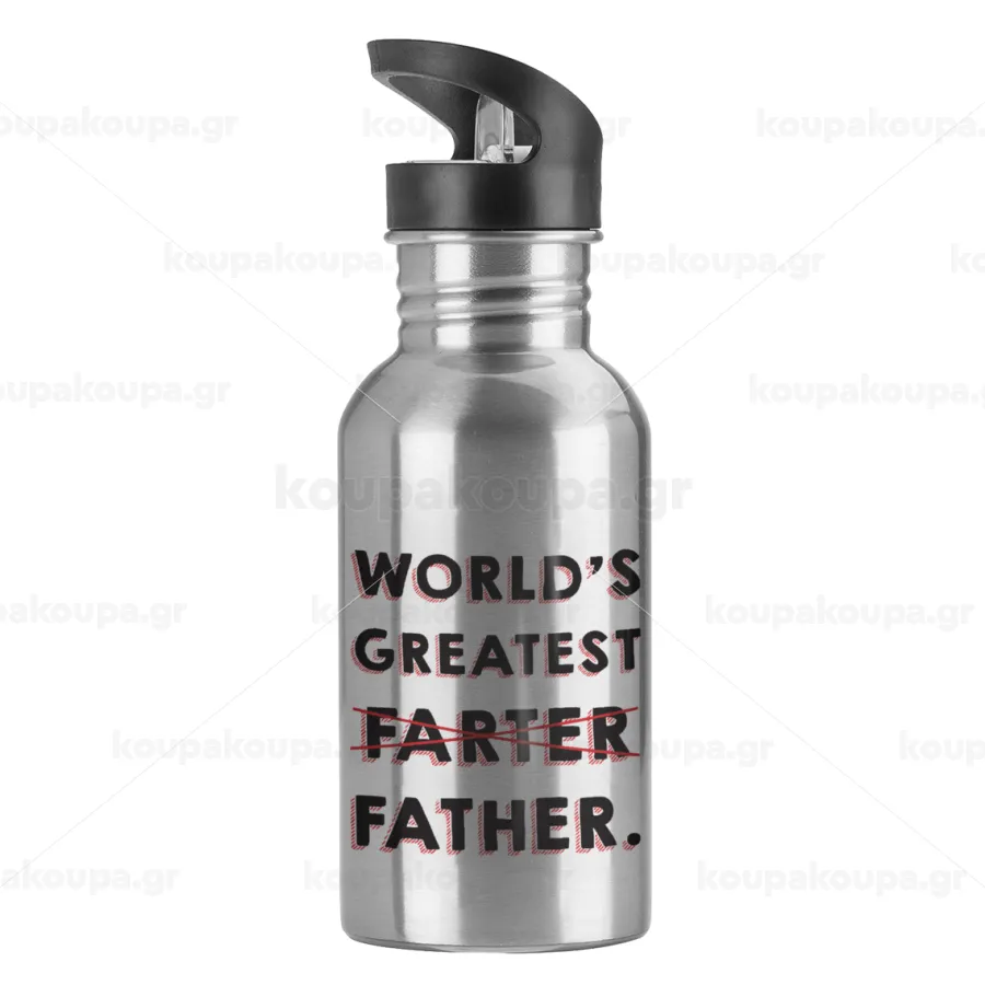 World's greatest farter, Παγούρι νερού Ασημένιο με καλαμάκι, ανοξείδωτο ατσάλι 600ml