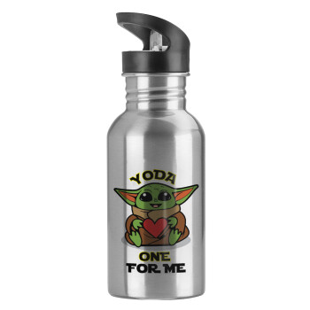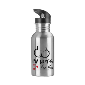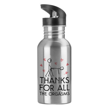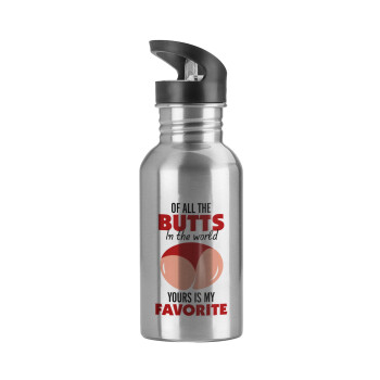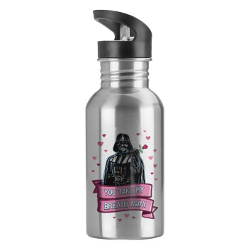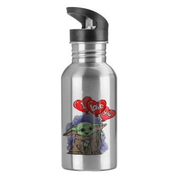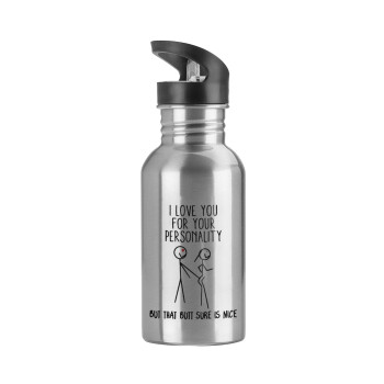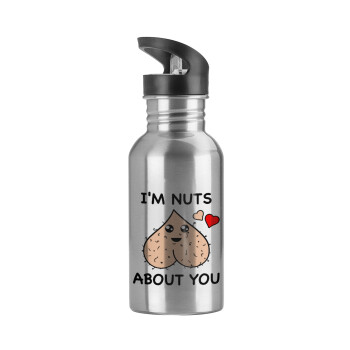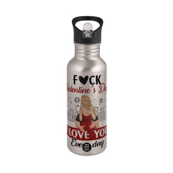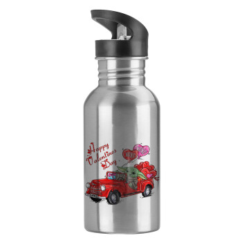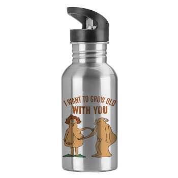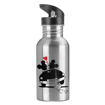 Παγούρι νερού Ασημένιο με καλαμάκι, ανοξείδωτο ατσάλι 600ml με θέμα Αγάπη, ερωτευμένοι