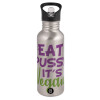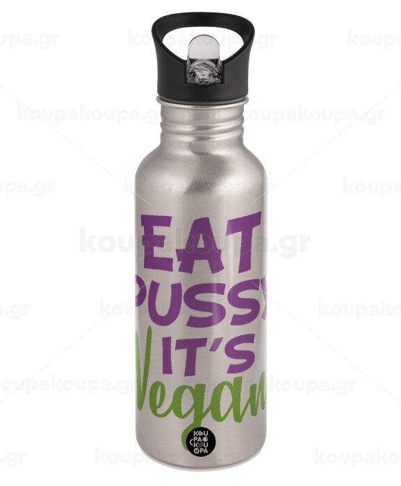 EAT pussy it's vegan, Παγούρι νερού Ασημένιο με καλαμάκι, ανοξείδωτο ατσάλι 600ml