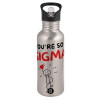 Sigma Valentine's Day , Παγούρι νερού Ασημένιο με καλαμάκι, ανοξείδωτο ατσάλι 600ml