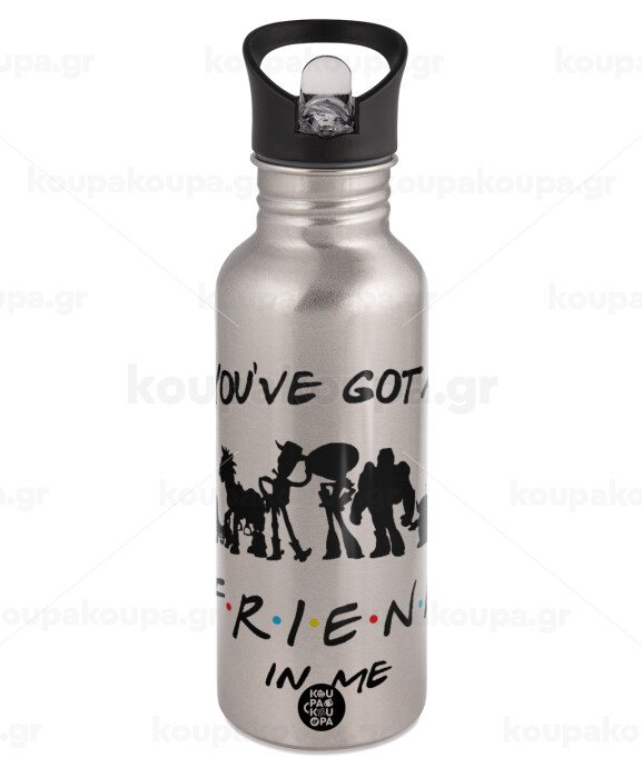 You've Got a Friend in Me, Παγούρι νερού Ασημένιο με καλαμάκι, ανοξείδωτο ατσάλι 600ml