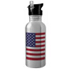 Σημαία Αμερικής, Παγούρι νερού Ασημένιο με καλαμάκι, ανοξείδωτο ατσάλι 600ml