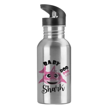 Baby Shark (girl), Παγούρι νερού Ασημένιο με καλαμάκι, ανοξείδωτο ατσάλι 600ml