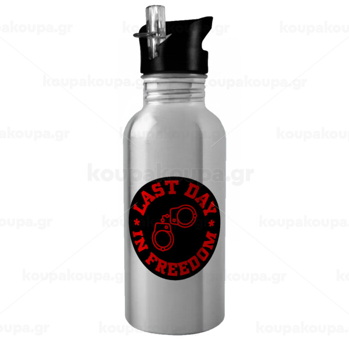 Last day in freedom, Παγούρι νερού Ασημένιο με καλαμάκι, ανοξείδωτο ατσάλι 600ml
