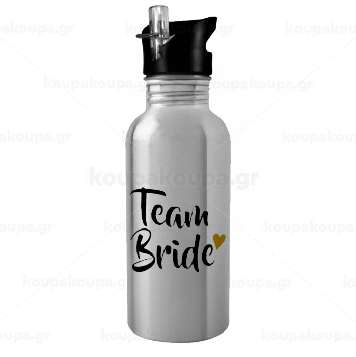 Team Bride, Παγούρι νερού Ασημένιο με καλαμάκι, ανοξείδωτο ατσάλι 600ml