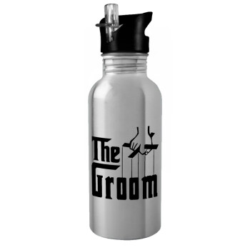 The Groom, Παγούρι νερού Ασημένιο με καλαμάκι, ανοξείδωτο ατσάλι 600ml