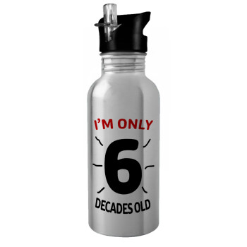 I'm only NUMBER decades OLD, Παγούρι νερού Ασημένιο με καλαμάκι, ανοξείδωτο ατσάλι 600ml