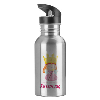 Η νονά μου, πριγκίπισσα, Παγούρι νερού Ασημένιο με καλαμάκι, ανοξείδωτο ατσάλι 600ml