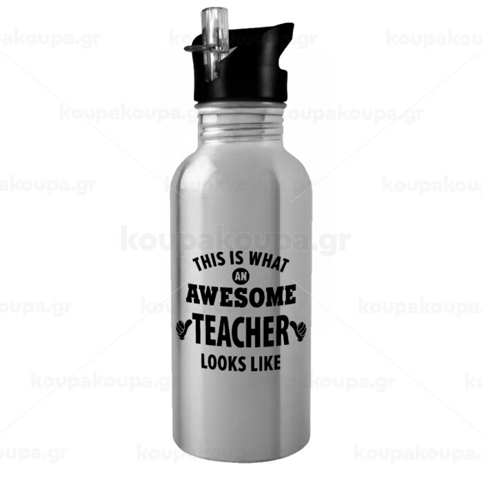 This is what an awesome teacher looks like hands!!! , Παγούρι νερού Ασημένιο με καλαμάκι, ανοξείδωτο ατσάλι 600ml