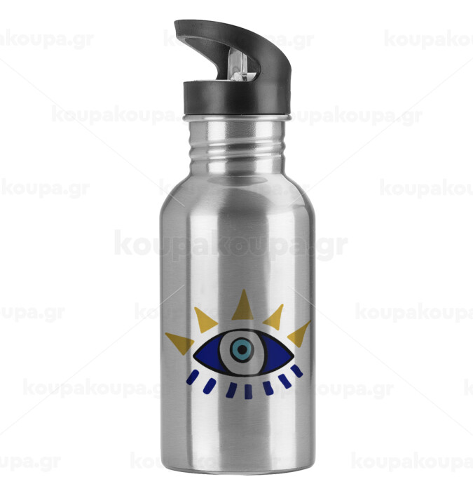 Μάτι, Παγούρι νερού Ασημένιο με καλαμάκι, ανοξείδωτο ατσάλι 600ml