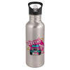 Barbie car, Παγούρι νερού Ασημένιο με καλαμάκι, ανοξείδωτο ατσάλι 600ml