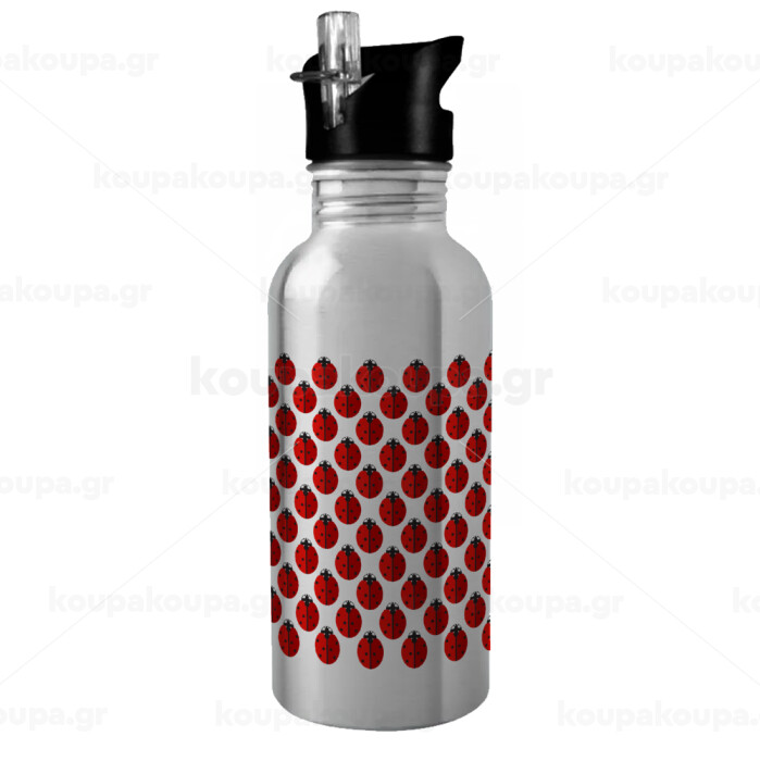 Πασχαλίτσα, Παγούρι νερού Ασημένιο με καλαμάκι, ανοξείδωτο ατσάλι 600ml