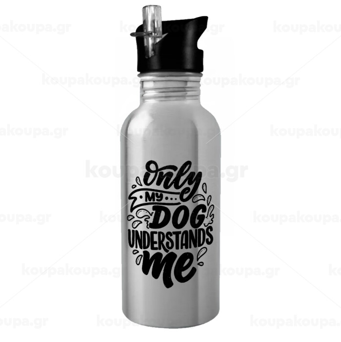 Only my DOG, understands me, Παγούρι νερού Ασημένιο με καλαμάκι, ανοξείδωτο ατσάλι 600ml