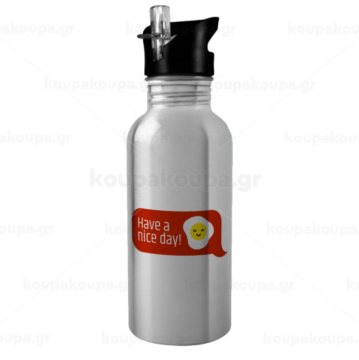 Have a nice day Emoji, Παγούρι νερού Ασημένιο με καλαμάκι, ανοξείδωτο ατσάλι 600ml